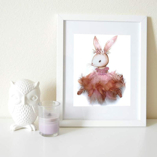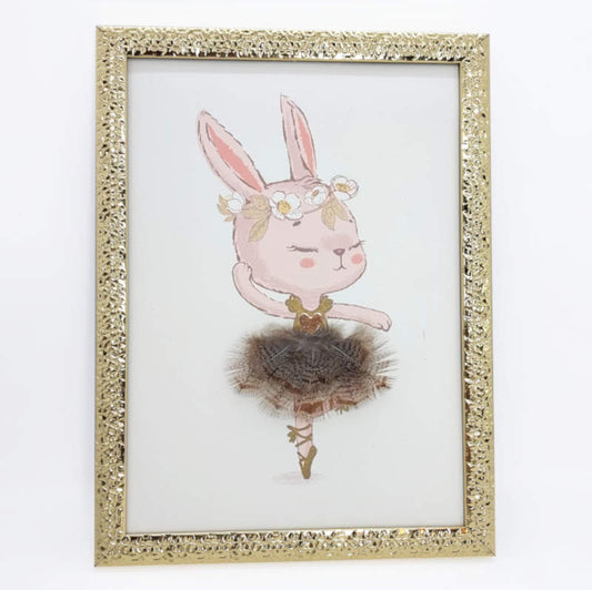 Tableau lapin 3D en plumes naturelles "Miss Bunny"